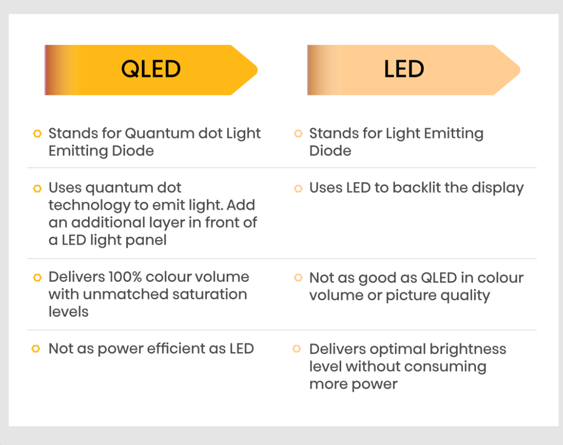 به زبان ساده، QLED همان LED است که با اضافه شدن یک لایهی خاص از نقاط کوانتومی، کیفیت رنگ و روشنایی آن چندین برابر شده است.
